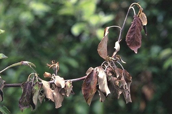 Навесні виникає моніліальний опік. Уражені квіти, листки та молоді пагони буріють і засихають, ніби обпалені вогнем. Засихання може поступово поширюватися по гілці, що призводить до відмирання пагонів.