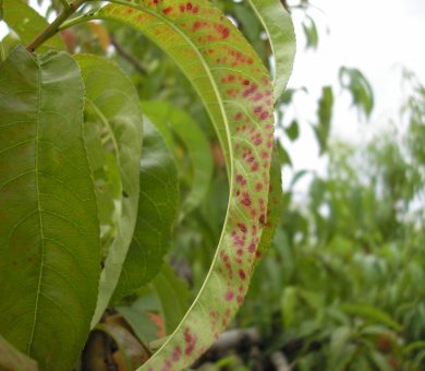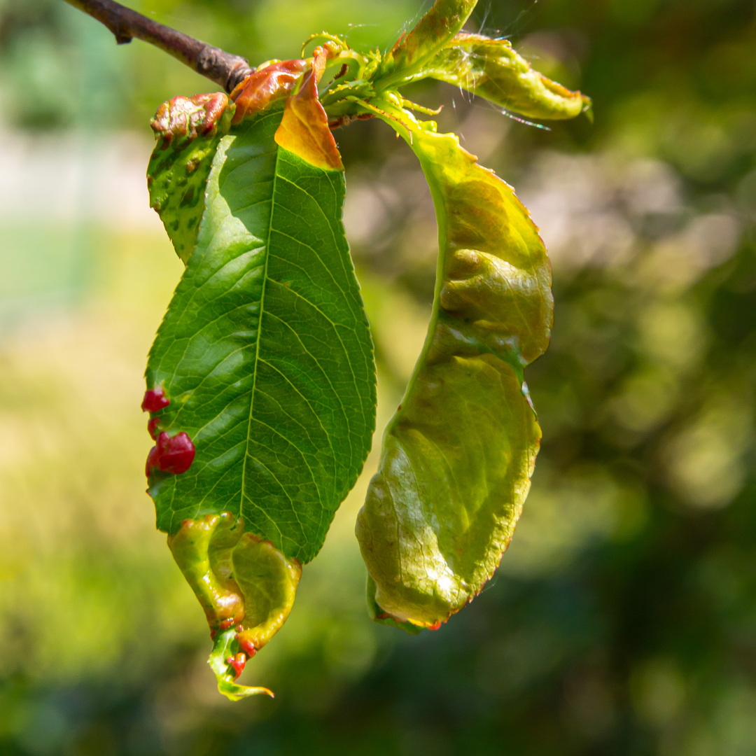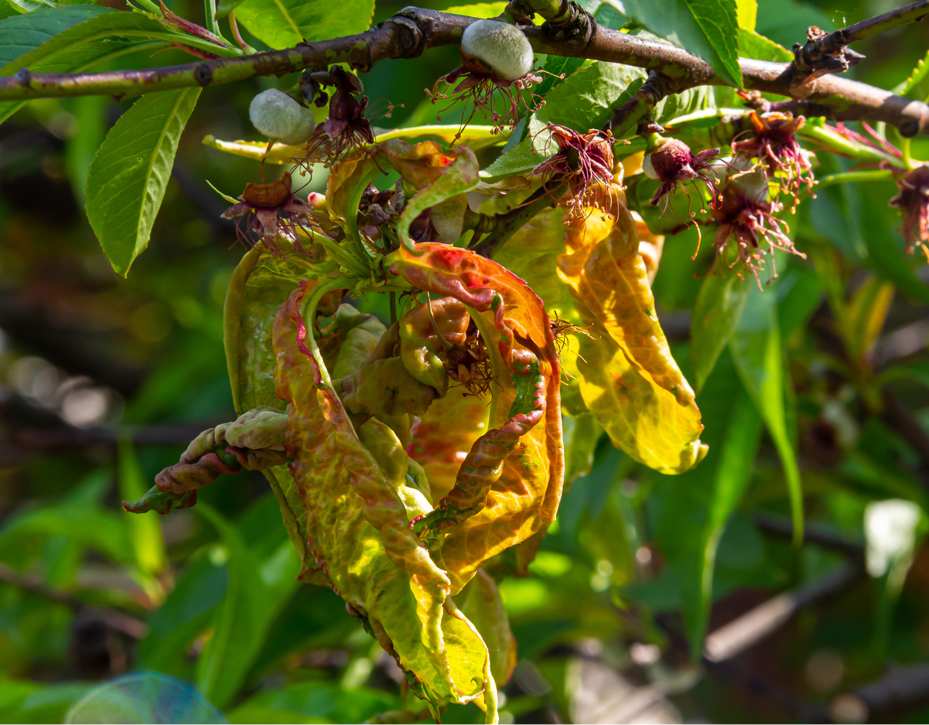 Кучерявість листя – одна з найпоширеніших і найнебезпечніших хвороб персика. Найчастіше уражуються листки та молоді пагони, рідше – плоди. Перші симптоми з’являються після розпускання молодого листя. Листки деформуються, скручуються та нерівномірно розростаються, набуваючи характерного червонувато-рожевого забарвлення і гофрованої поверхні.