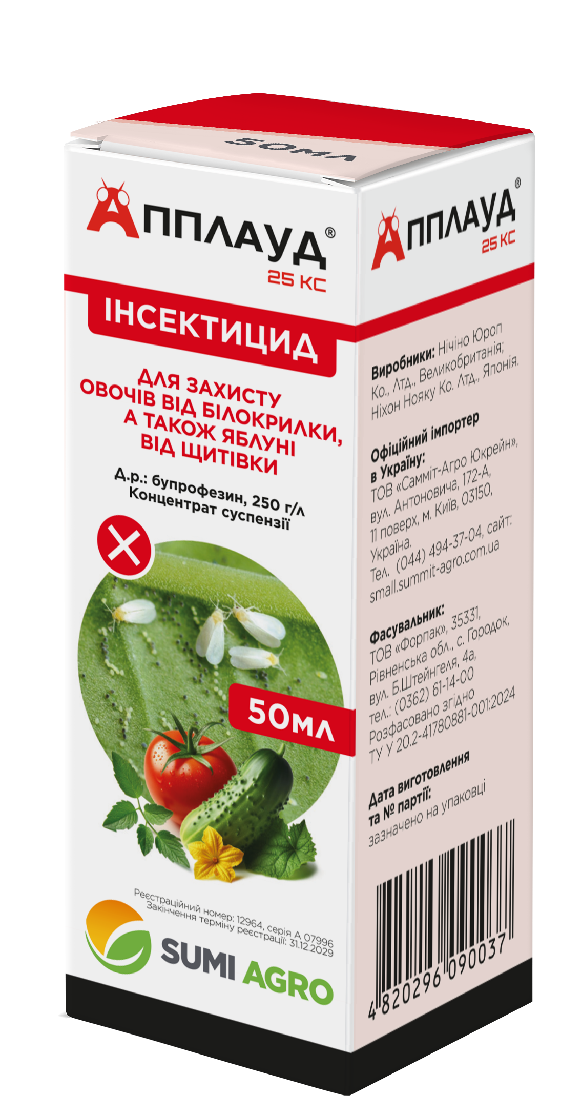 • у разі високого ступеня заселення білокрилкою рекомендується використовувати суміш АППЛАУД з БАЛАЗО;